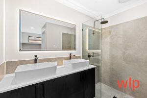 * King size master bedroom features mirrored robes and deluxe ensuite with double vanity and LED mirror