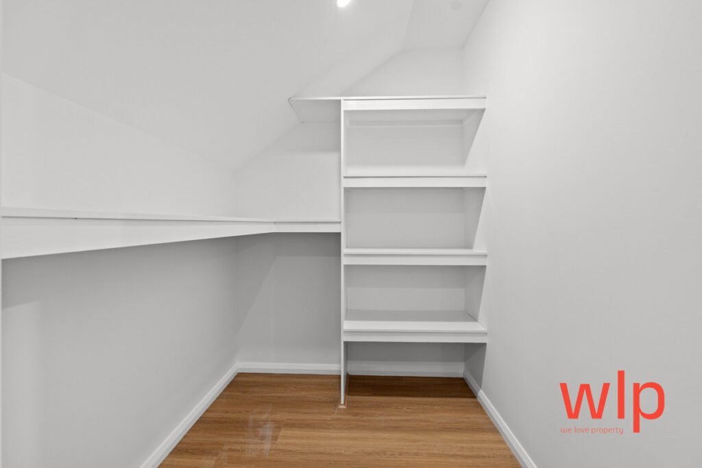 The family bathroom is just as impressive, with a full-sized bath, stone benchtop vanity, and luxury finishes. Ducted reverse-cycle air conditioning ensures year-round comfort, while the spacious double garage with shoppers’ entry adds everyday practicality.