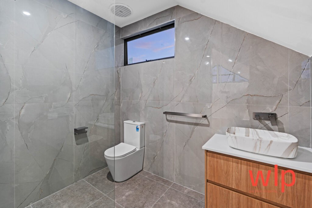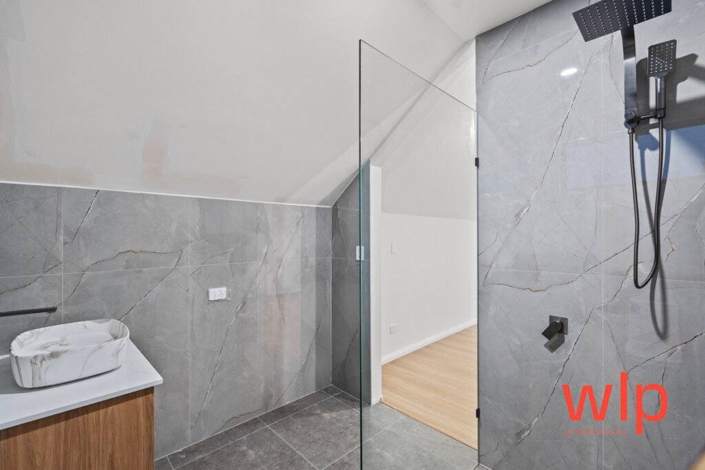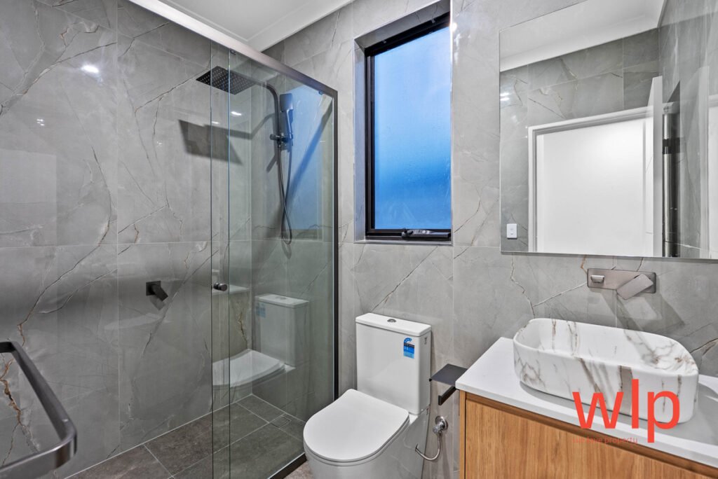 The master suite includes a spacious walk in robe for unit 1 / built-in robe for unit 2 and a private ensuite finished with floor-to-ceiling tiles, stone benchtops, and LED mirrors. Two additional queen-sized bedrooms come complete with built-in robes, making them perfect for family living or a home office.
