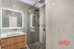 The master suite includes a spacious walk in robe for unit 1 / built-in robe for unit 2 and a private ensuite finished with floor-to-ceiling tiles, stone benchtops, and LED mirrors. Two additional queen-sized bedrooms come complete with built-in robes, making them perfect for family living or a home office.